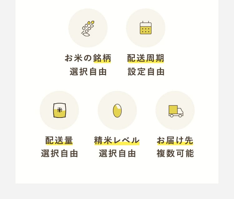 自由に選べる精米レベル 家族でシェアできる 利用期間無制限のお米選び