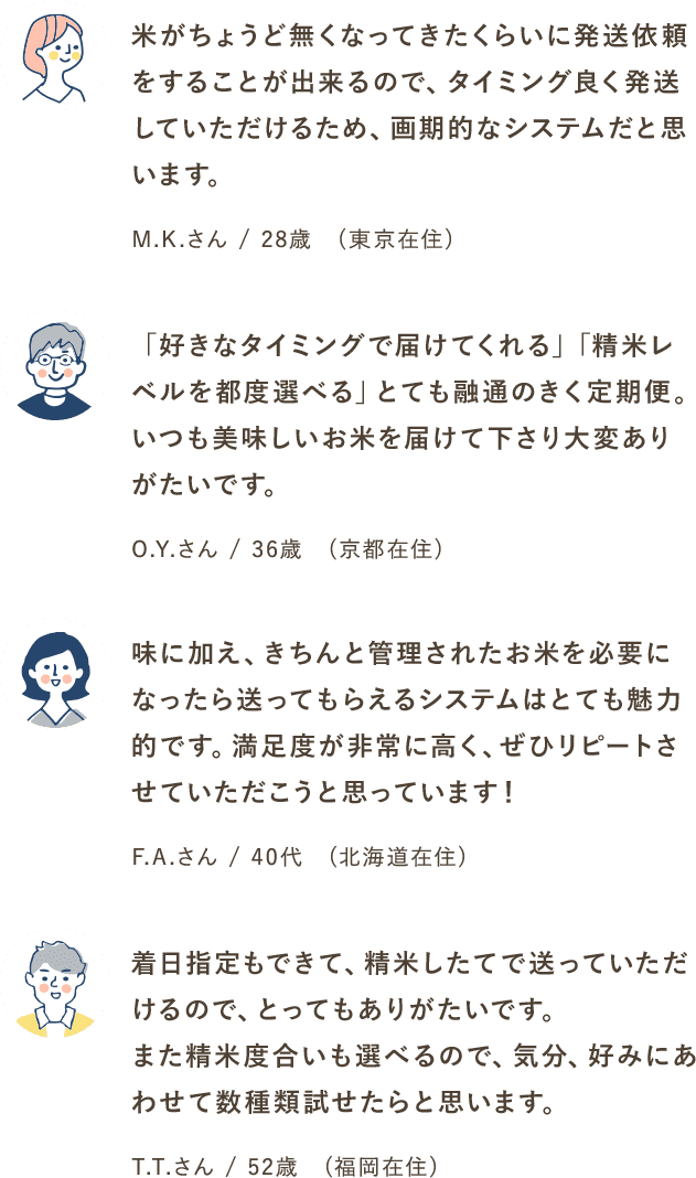 美味しいお米と感謝の気持ちをお届け。 Voice01 Voice02 Voice03